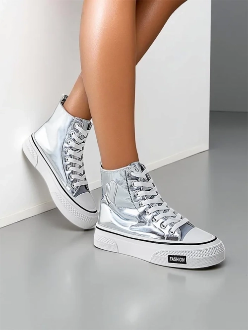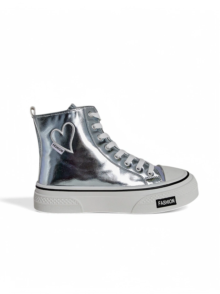 Royalfashion Vysoké dámské tenisky srdce Stříbrné srdce