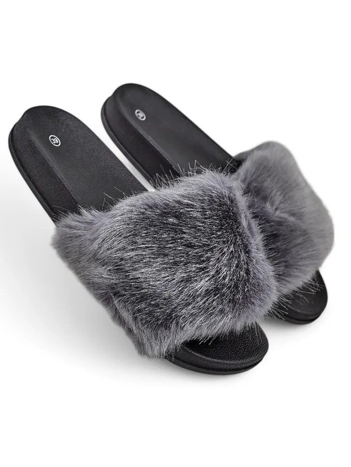 • Krásné dámské pantofle vyrobené z gumového materiálu. Model má na řemínku dekorativní kožešinu. Jsou vhodné pro mnoho originálních stylů. POZNÁMKA: model preferovaný pro lidi s úzkou anatomií chodidla.