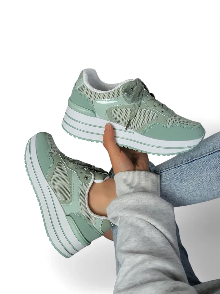 - Dámské tenisky vyrobené z eko-kůže a textilu na platformě. Model na šněrování, má textilní stélku. Perfektní pro vytváření stylových outfitů!