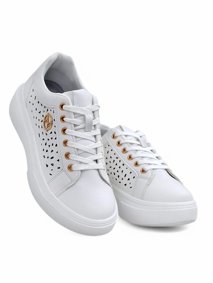Dámské tenisky Calista Bianco z eko kůže, prolamované, jarní 4,5 cm