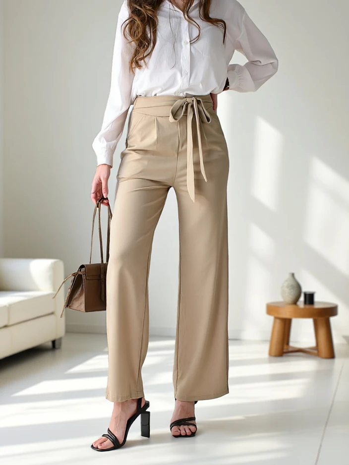 - Úžasné široké kalhoty z lehké tkaniny, model má 2 kapsy a elastický pas. Kromě toho je součástí také pásek. Nutnost ve vašem šatníku! POZNÁMKA: Přesnost měření (+/-) 1 cm.