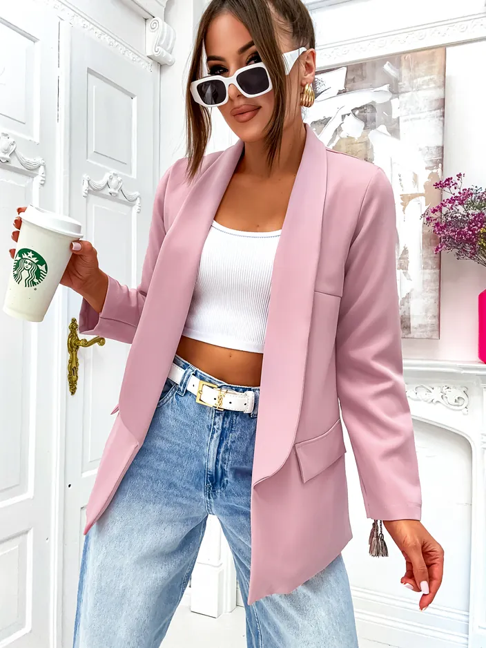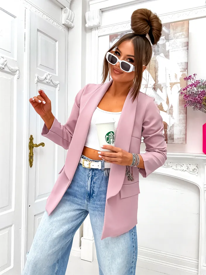 - Stylový dámský blazer. Model s dlouhými rukávy, nemá zapínání. Must-have této sezóny! POZNÁMKA: Přesnost měření (+/-) 1 cm.