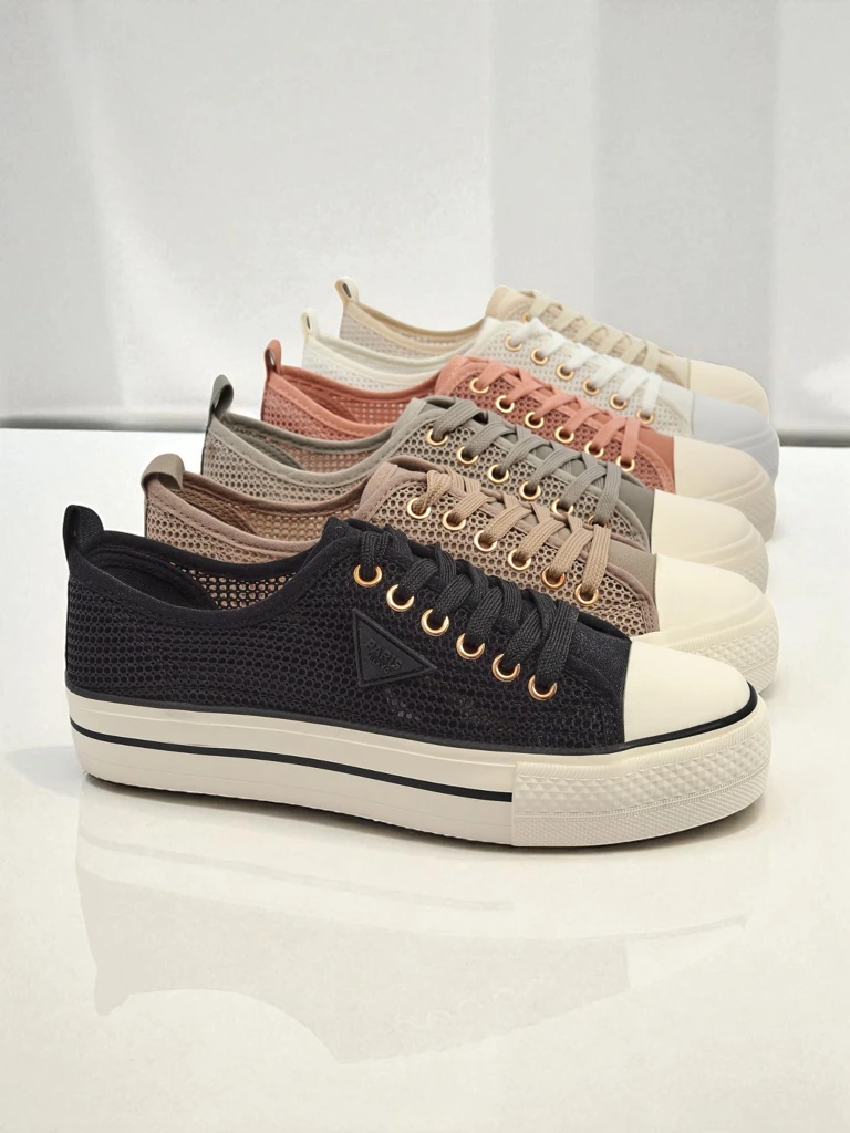 - Klasické ažurové tenisky, vnitřek je podšitý látkou. Velmi pohodlné díky gumové podrážce. Obuv se hodí k mnoha každodenním stylizacím!