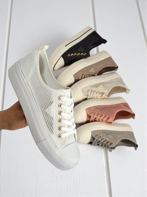 - Klasické ažurové tenisky, vnitřek je podšitý látkou. Velmi pohodlné díky gumové podrážce. Obuv se hodí k mnoha každodenním stylizacím!