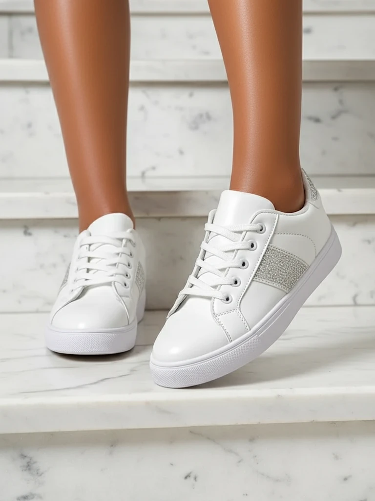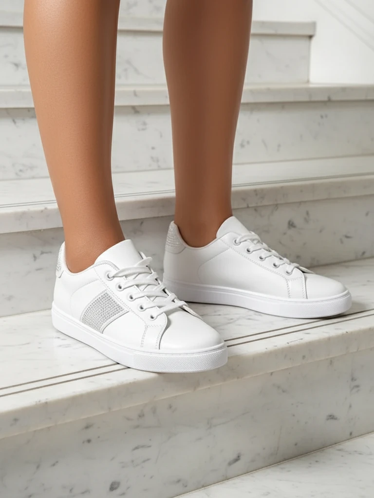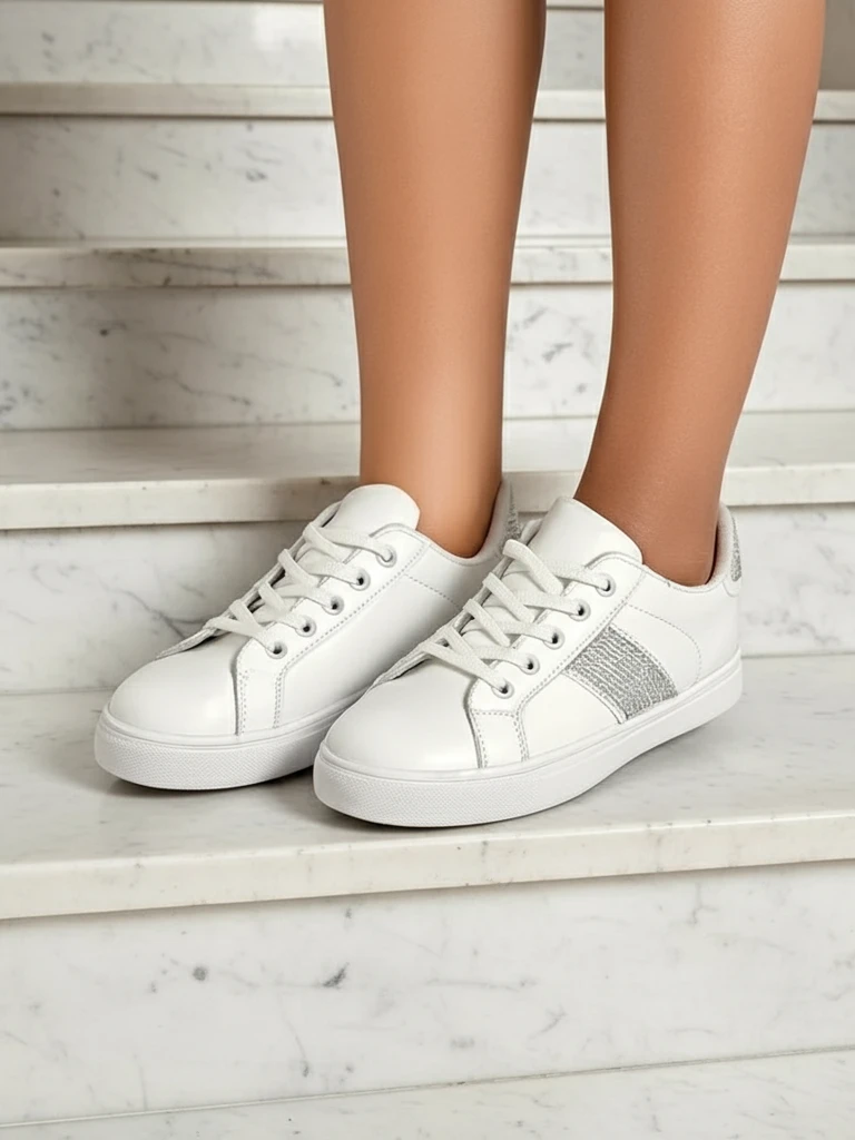 Objevte naše módní bílé tenisky, které kombinují pohodlí s elegancí. Tyto boty jsou vyrobeny z vysoce kvalitní ekologické kůže a jsou nejen estetické, ale i šetrné k životnímu prostředí. Ekologická kůže, známá svou vynikající trvanlivostí a snadnou údržbou, zajišťuje dlouhodobé používání. Tenisky jsou obohaceny o textilní vložku, která zaručuje pohodlí při nošení po celý den a správnou cirkulaci vzduchu.