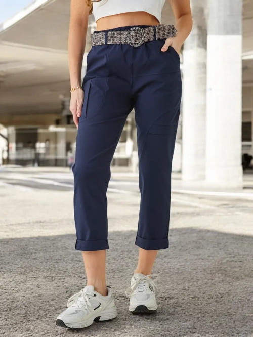Royalfashion Dámské viskózové kalhoty s opaskem