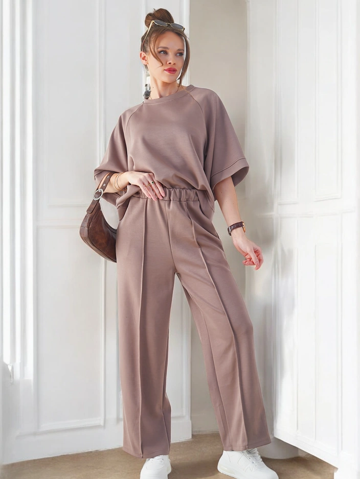 Royalfashion dámský set s krátkými rukávy a širokými kalhotami