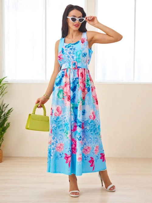 - Elegantní dámské viskózové midi šaty s ramínky a pásem s květinovým vzorem jsou lehkou a ženskou volbou na teplé dny. Subtilní potisk a přiléhavý střih poskytují stylový a pohodlný vzhled.