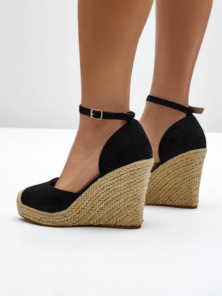 - Dámské wedge sandály inspirované espadrilkami. Svršek je vyroben z ekologické-suede. Stélka je pokryta ekologickou kůží. Klín je doplněn tkaným jutovým provázkem. Perfektní pro léto!