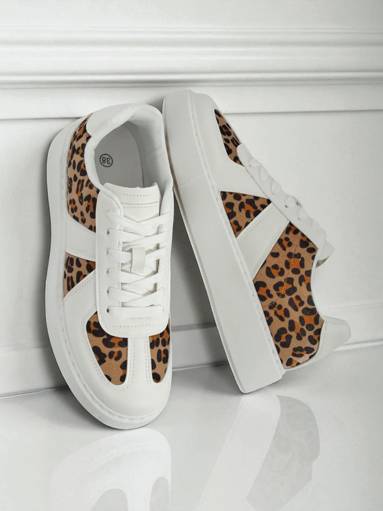 Dámské Tenisky Calista Leopardia – Bílé Eko Kůže Tkanina Jaro 4cm
