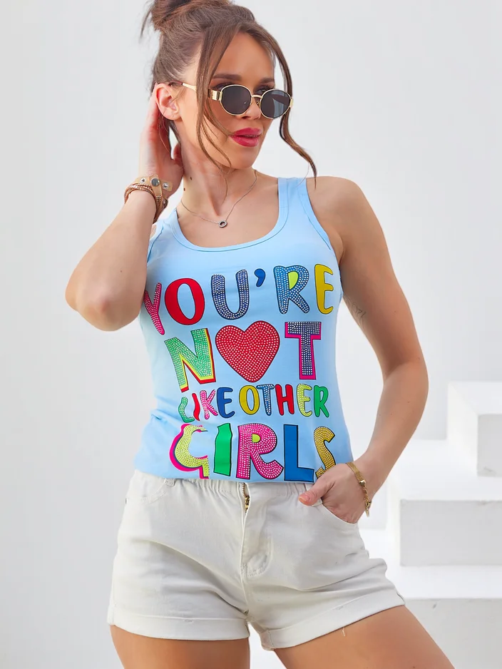 - Dámský bavlněný top s ramínky, který je navržen s jedinečnými potisky, spojuje pohodlí s módním designem. Lehký a prodyšný, ideální na letní dny a trendy outfity.