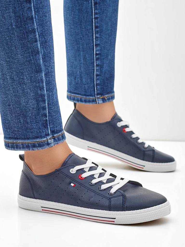 • Klasické tenisky vyrobené z ekologické kůže, interiér je podšívkován látkou. Velmi pohodlné, na šněrování. Obuv se hodí k mnoha každodenním stylům!
