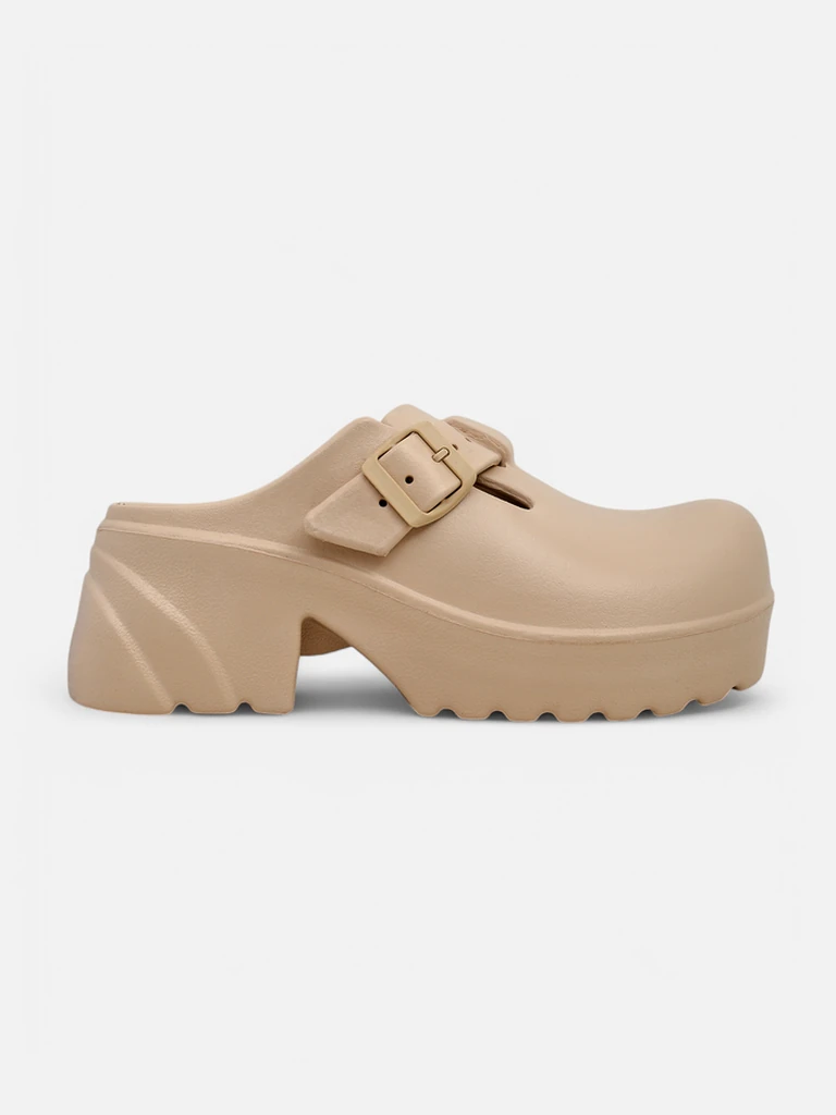 • Zdůrazněte svůj letní styl a užijte si pohodlí s těmito sandály na podpatku. Model je vyroben z gumového plastu. Je zdoben kulatou špičkou. Platforma je zdobena přezkami. Jsou perfektní volbou pro letní dny!