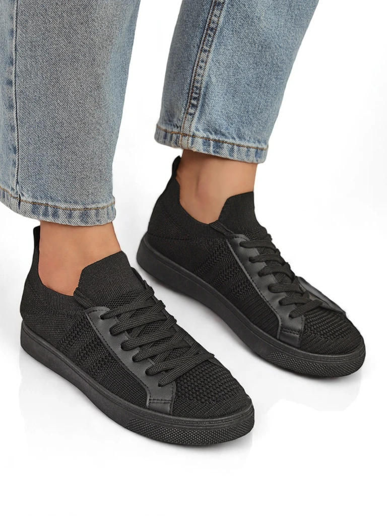 Dámské tenisky Livia Nero – černé tenisky z tkaniny a ekokůže na ploché podrážce