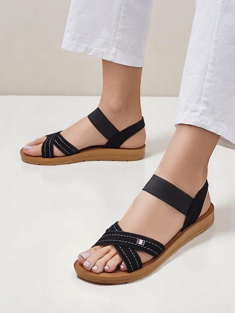 - dámské sandály s nízkou podrážkou – dokonalý nápad na horké letní dny. Model je vyrobený z látky a ekokůže. Nazouvací obuv. Kombinace stylu a pohodlí!