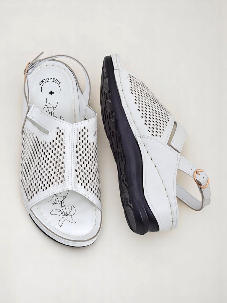 Sandály Calcebianca jsou kombinací italského stylu, tradice antiky a moderního pohodlí. Vyrobené z vysoce kvalitní přírodní lícové kůže, zaručují nejen estetický vzhled, ale i dlouhodobou odolnost. Laserem vyřezávané vzory na svršku zajišťují dokonalou ventilaci a módní, subtilní vizuální efekt, který zapadá do nejnovějších trendů letní obuvi s lehce retro charakterem. Kožená stélka s floristickým potiskem a jemné, nastavitelné zapínání na pásku zajišťují přizpůsobení individuálním potřebám, zároveň chrání nohu a posilují její správné uložení.