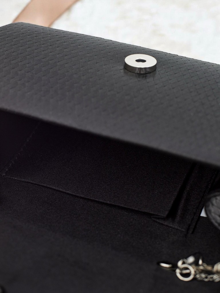 • Elegantní psaníčko z ekologické kůže, pokryté látkou s třpytivou nití a jemným reliéfem. Zapínání na magnet, s odepínatelným ramínkem – ideální na večer.