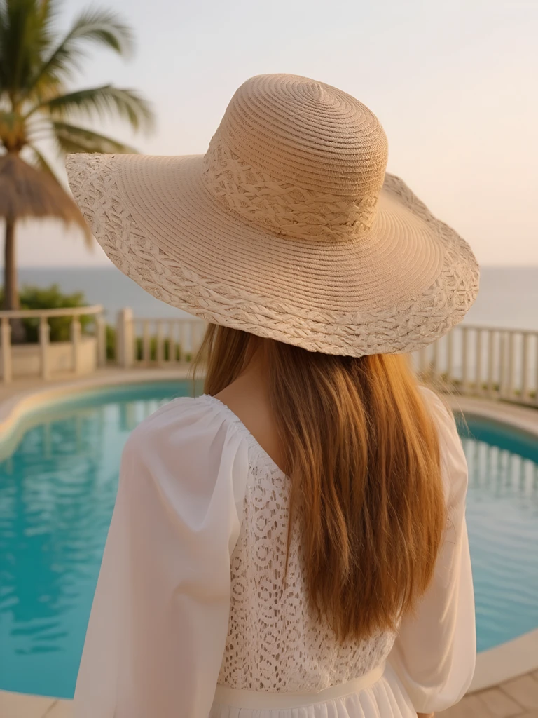 - Slaměný klobouk se širokou krempou a dekorativním pletením. Stylový a vzdušný, ideální na léto — spojuje přírodní šarm s elegancí a účinnou ochranou před sluncem.
