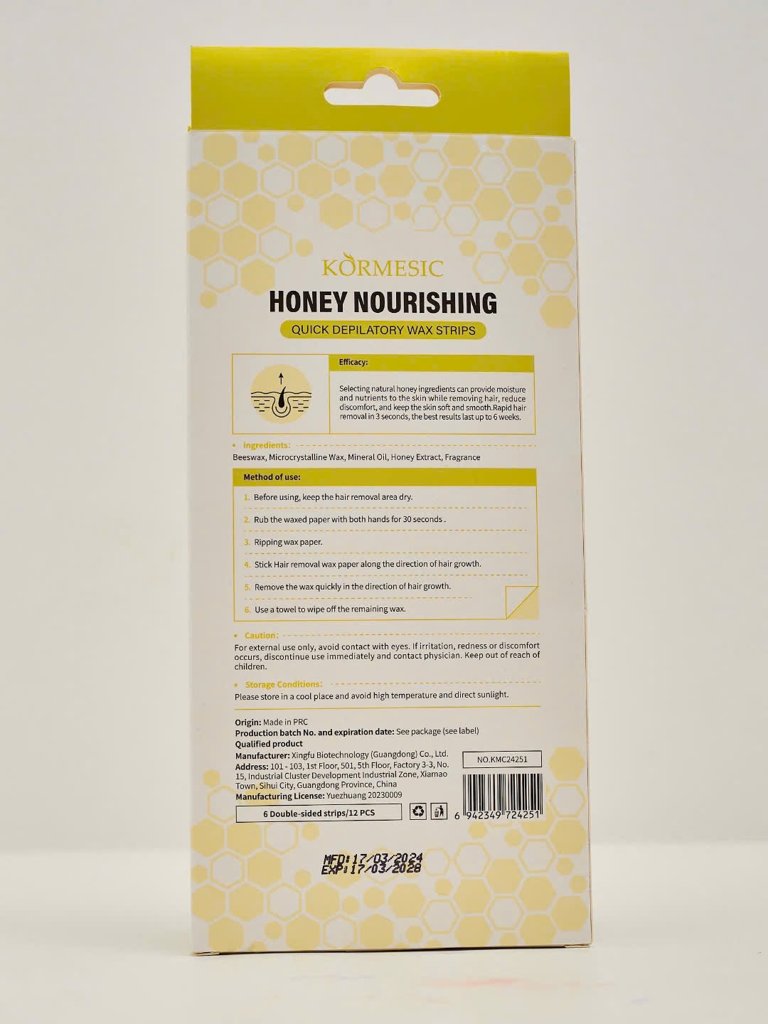 • Voskové pásky s medem na depilaci těla – 12 kusů. Efektivně odstraňují chloupky a zanechávají pokožku hladkou až na 6 týdnů. Jemné k pokožce, s přirozenou vůní medu.