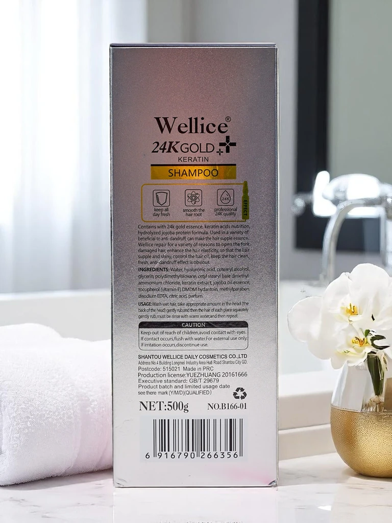 Profesionální vlasový šampon s keratinem 24K Gold – Intenzivní hydratace a uhlazení vlasů 5 v 1