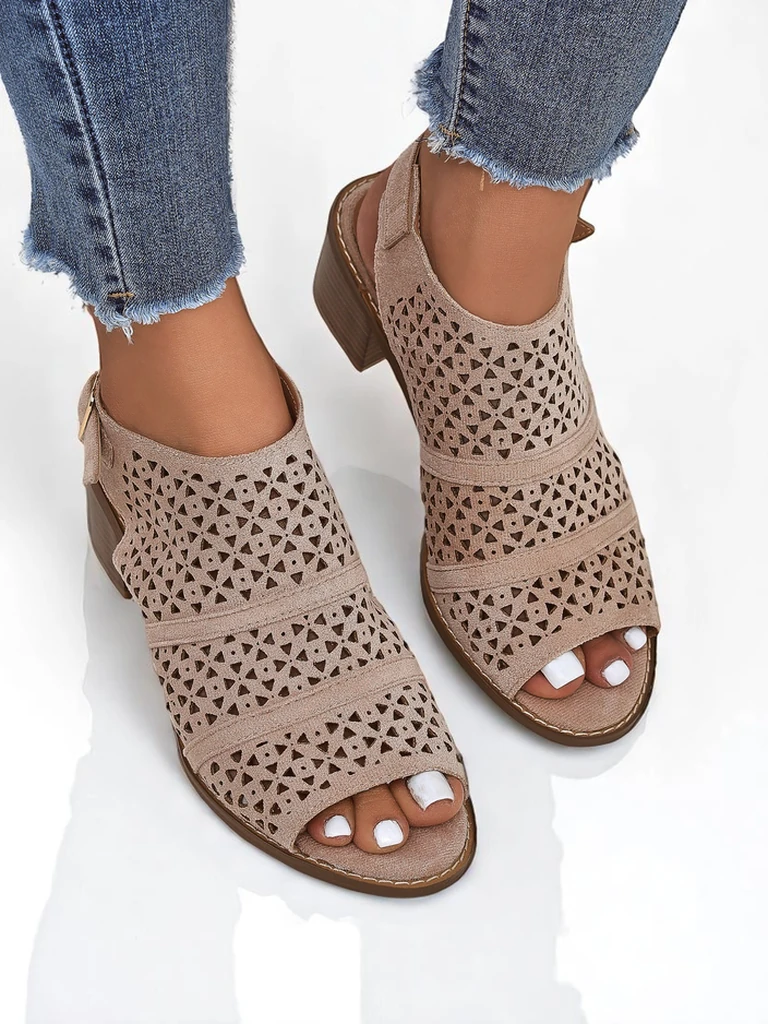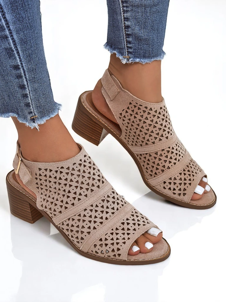 Royalfashion Dámské sandály na nízkém sloupku ažurové Elira