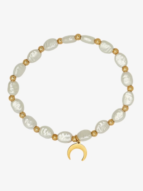 - Jemný dámský náramek na elastickém pásku, ozdobený perlami a korálky. Jeho půvab umocňuje krásný přívěsek, který nenápadně poutá pozornost. Skvěle se hodí jak k elegantním, tak i každodenním outfitům s nádechem třídy.