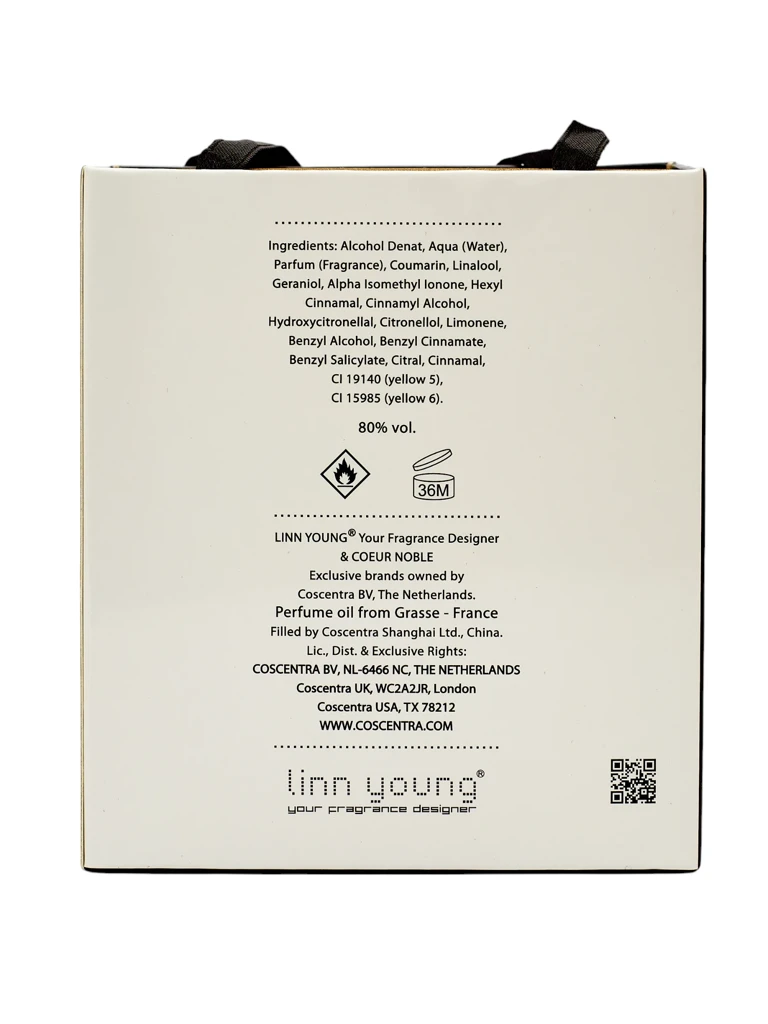 - Elegantní vůně se otevírá svěžími aldehydy, bergamotem, citronem a neroli, rozkvétá do květinového srdce z růže, lilie a jasmínu. Teplý základ z vanilky, vetiveru, ambry a santalového dřeva dodává kompozici hloubku a dlouhotrvající výdrž.