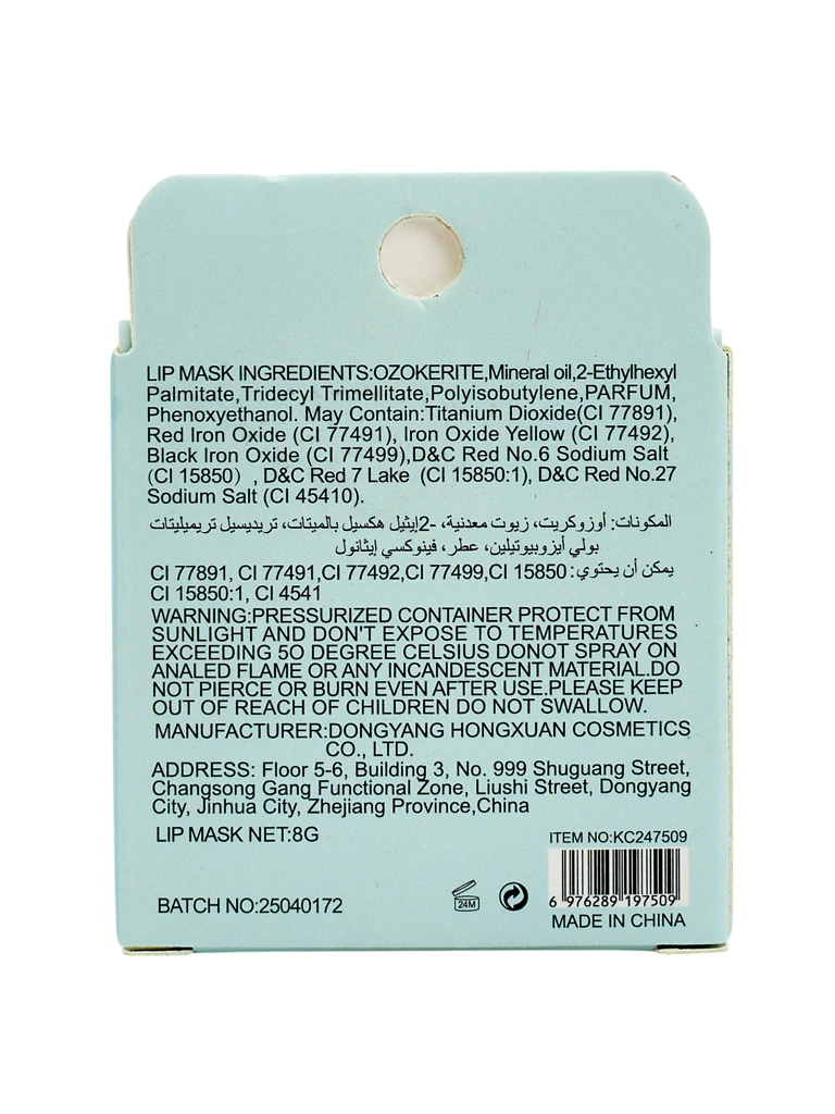Pielęgnacja i przechowywanie: Produkt nakładaj cienką warstwą na noc bezpośrednio na czyste usta. Zalecane jest używanie czystego aplikatora lub opuszka palca. Przechowuj w chłodnym, suchym miejscu, z dala od bezpośredniego światła słonecznego. W razie potrzeby usuń nadmiar maseczki rano delikatną chusteczką. Produktu nie połykać.