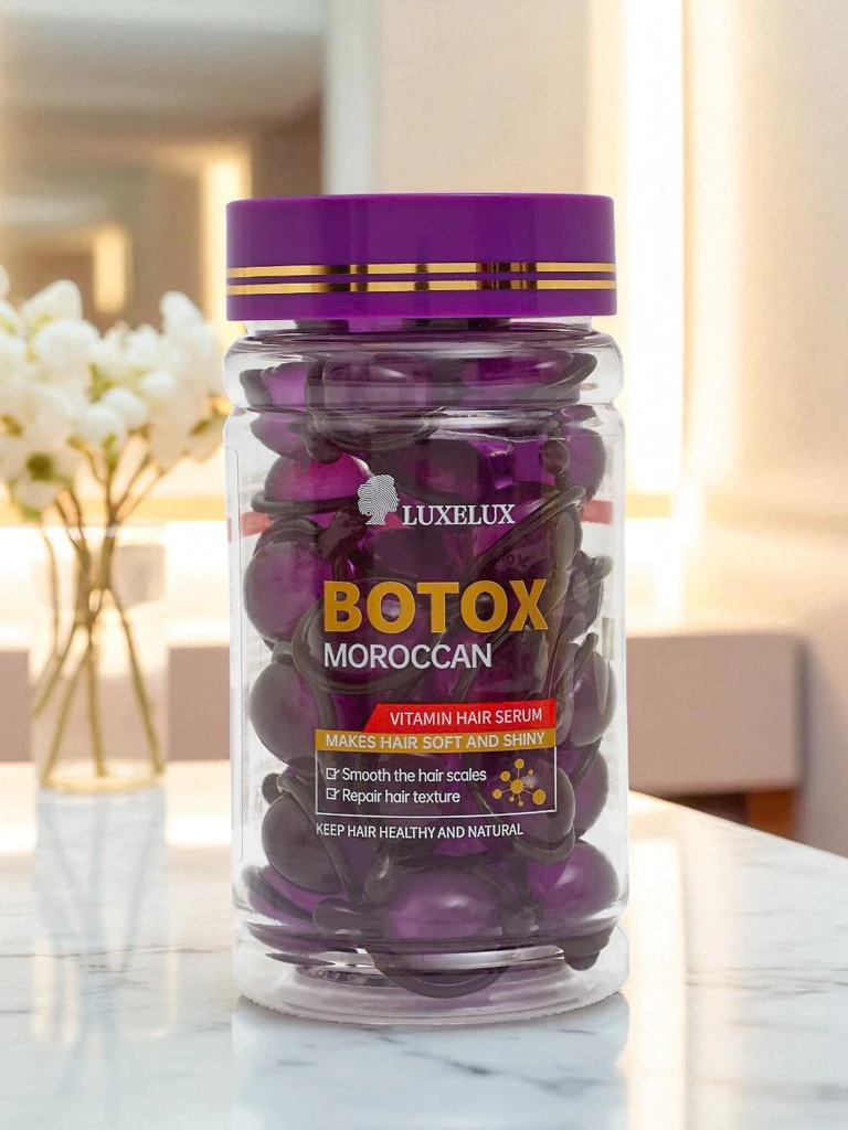 - Vlasové sérum Botox Marocké, multivitamin s arganovým olejem, hluboce hydratuje a vyhlazuje vlasy.