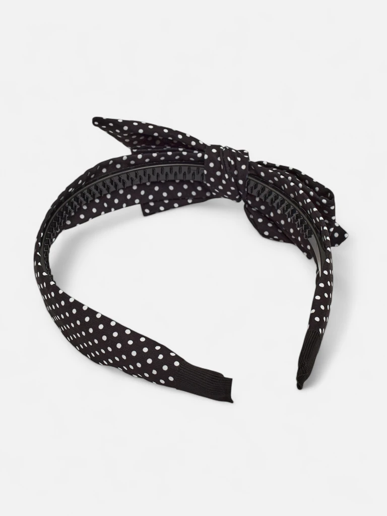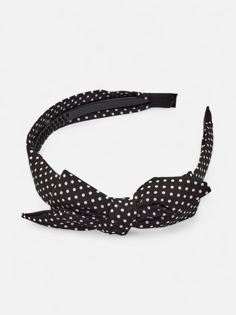 • Stylová dámská čelenka s puntíky a roztomilou mašlí. Ženská a elegantní, ideální pro každodenní i romantické stylizace. Vyrobena z měkkého materiálu, pohodlná na nošení a jemně podtrhuje krásu.