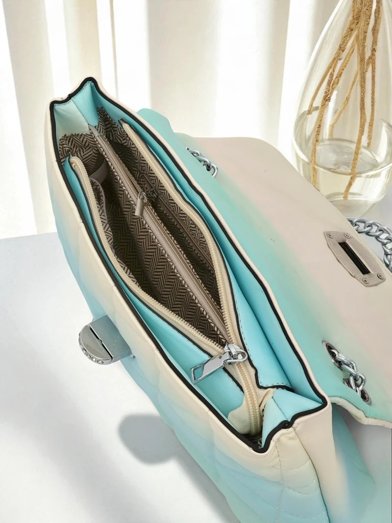 - Elegantní psaníčko z ekologické kůže s ombré efektem. Uzavíratelné na zip a patentku. Kovový řetízek místo popruhu dodává kabelce šmrnc. 1 přihrádka, ideální na nejdůležitější věci na večírek nebo na speciální příležitosti.