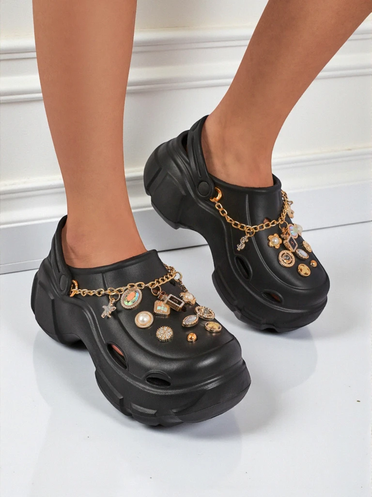 Aurelia Nero – stylové klapky s ozdobami a řetízkem, odolné