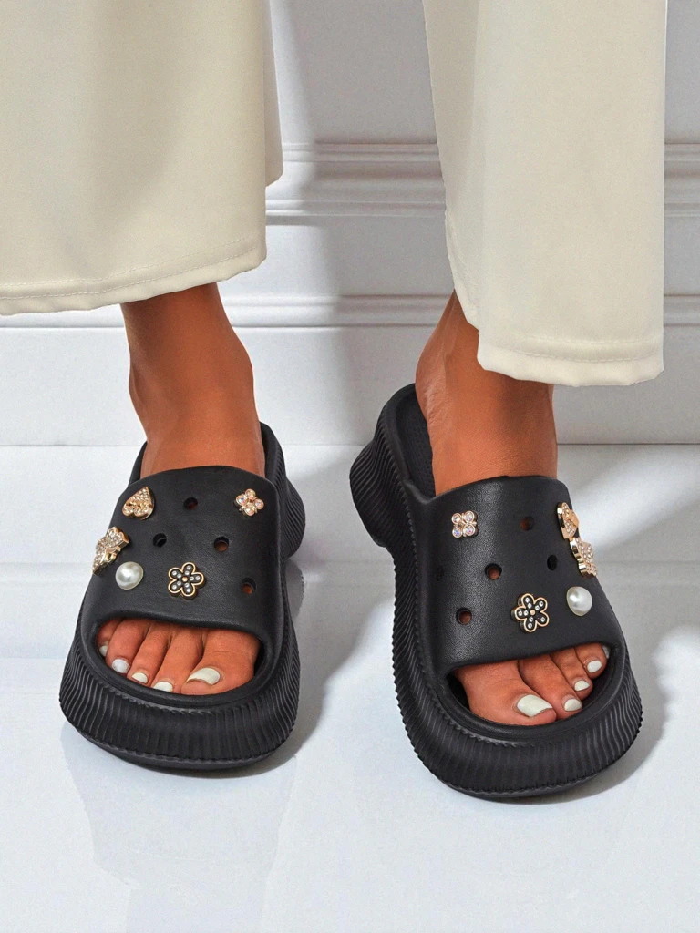 - Stylové dámské pantofle se zdobením na silnější gumové podrážce spojují pohodlí s módním vzhledem. Ideální na léto — lehké, odolné a poutavé díky detailům. Skvělé na pláž, do města i na každodenní nošení.