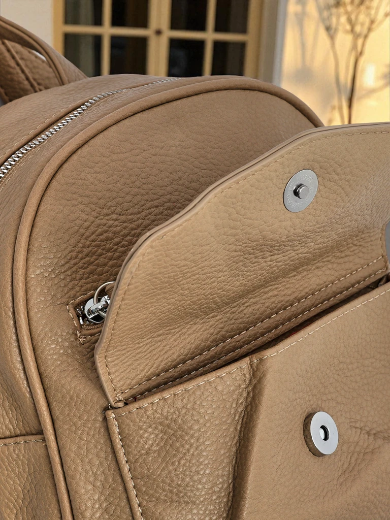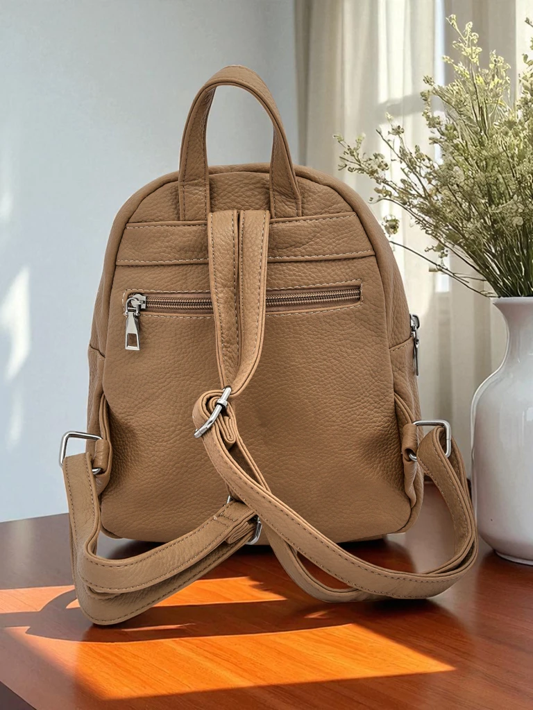 - Kompaktní batoh z eko kůže s jednou komorou a třemi kapsami na drobnosti. Nastavitelné popruhy zajišťují pohodlné nošení. Stylový, lehký a praktický – ideální do města, na univerzitu i na každodenní výlety.