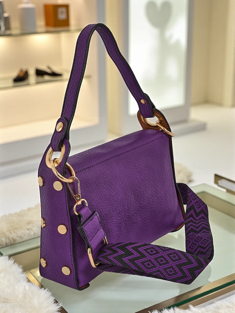 - Nastavitelný, široký popruh se vzorem boho, který zajišťuje pohodlí a umožňuje nosit kabelku jak na rameni, tak i křížem;