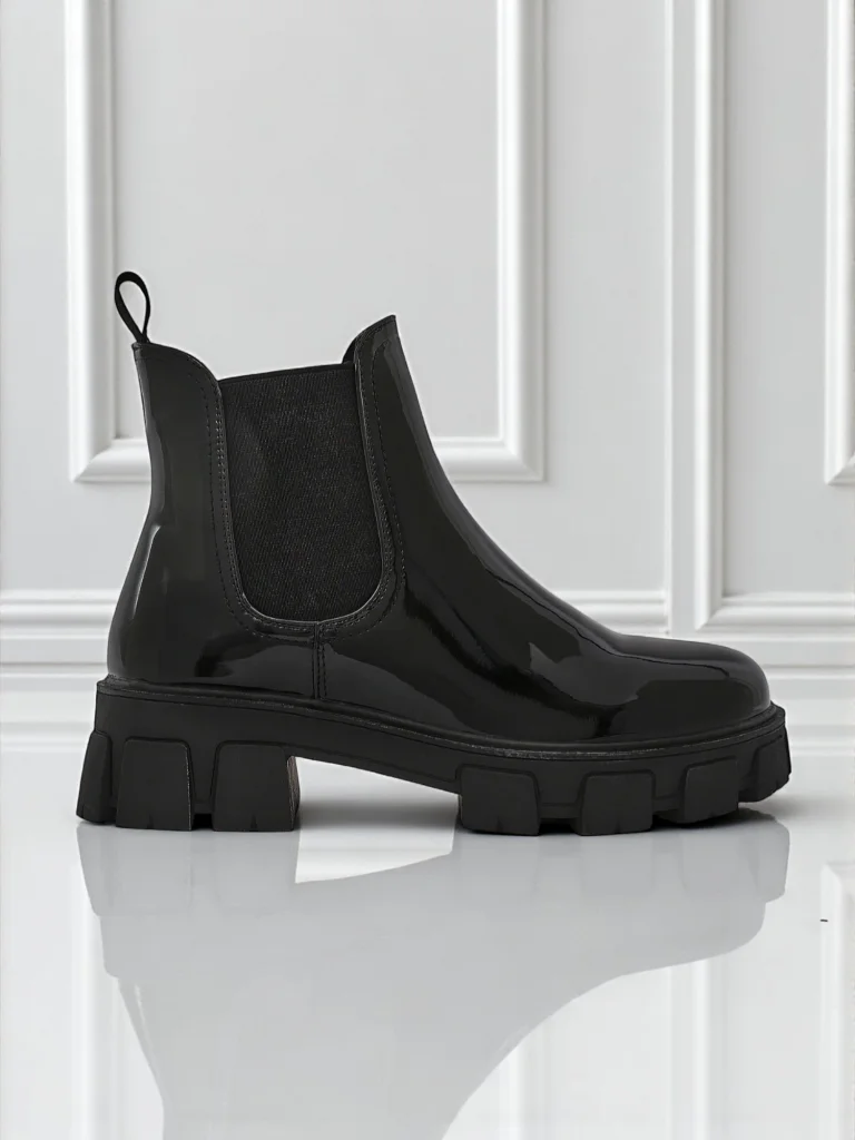 - Rewelacni dámské kotníkové boty na silnější podrážce jsou vyrobeny z lakované eko kůže. Vnitřek z jemné tkaniny zaručuje komfort i v chladnějších dnech. Nazouvací model.