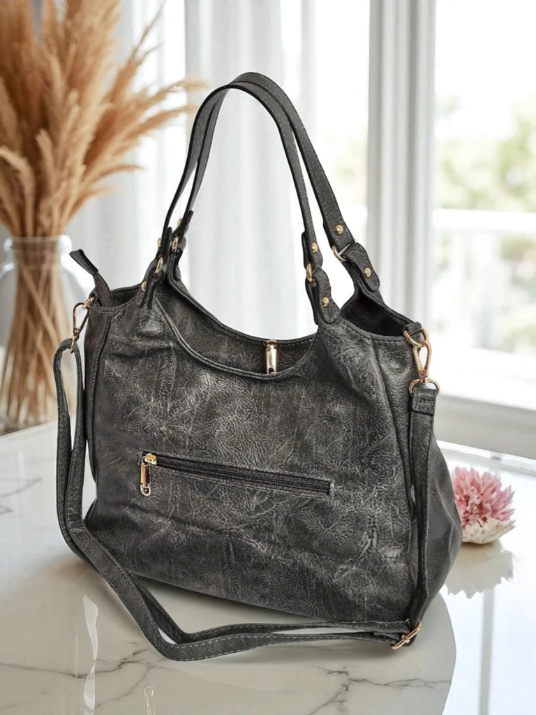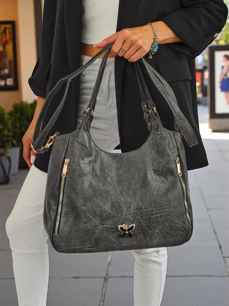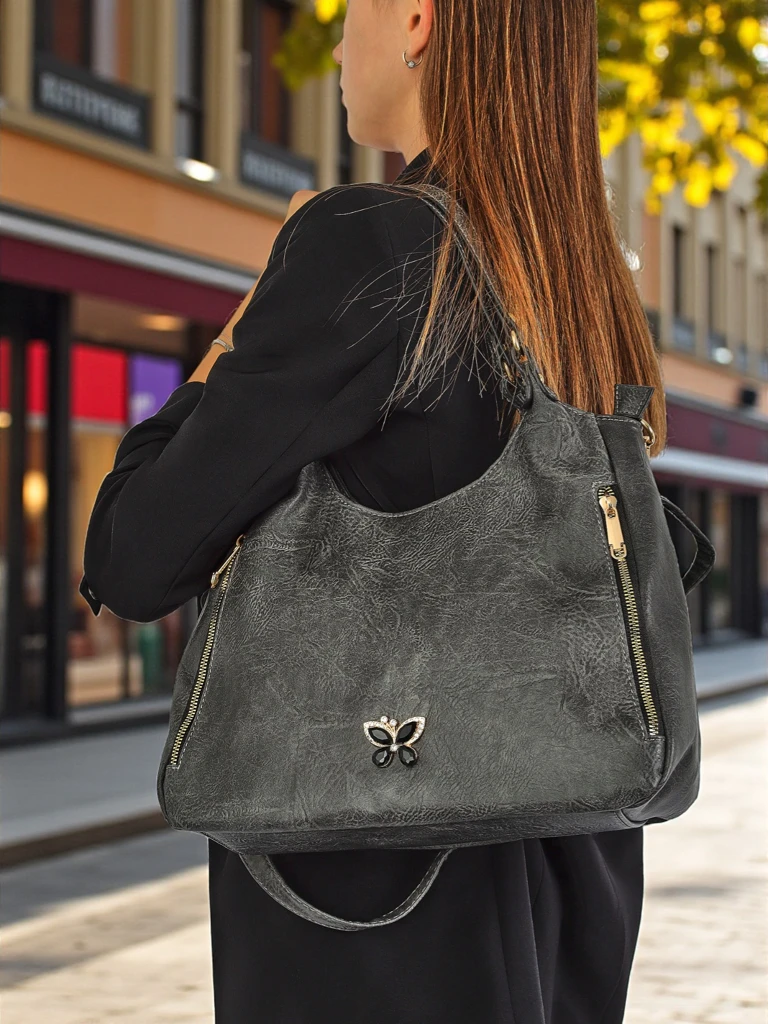 Černá dámská kabelka Callista je synonymem elegance a praktičnosti v jednom. Vyrobená z pečlivě vybrané ekologické kůže s jemnou texturou, kombinuje vysokou kvalitu s moderním designem. Výrobní proces je založen na pokročilých technikách šití a precizním zpracování detailů, což zaručuje trvanlivost a spokojenost s používáním. Ekologická kůže, ze které je kabelka vyrobena, má certifikáty potvrzující její šetrnost k životnímu prostředí a bezpečnost pro pokožku uživatele. Projekt Callista, inspirovaný klasickou formou italského designu, nabízí pohodlné nošení díky dvěma různým úchytům – na rameno a křížem, a také velkou kapacitu (42x24x15 cm), ideální pro každodenní nošení a do práce. Promyšlená organizace vnitřku zahrnuje několik kapes na zip a funkční hlavní prostor vyložený odolným materiálem, který poskytuje ideální místo pro peněženku, telefon, kosmetiku a další nezbytné drobnosti. Výhody kabelky Callista: - Vysoce kvalitní ekologická kůže – materiál s klasickým, ušlechtilým vzhledem, snadno se čistí a je odolný proti poškození. - Lehká a prostorná – váží pouhých 2520 g a pojme všechny potřebné předměty denní potřeby. - Bezpečné zavírání na zip zaručuje ochranu obsahu. - Ozdobné detaily, jako je lesklý motýlí přívěsek, dodávají jemný půvab. Nápady na stylizace: 1. Kancelář a obchodní jednání: kombinujte s klasickým sakem a pouzdrovou sukní – Callista dodá stylizaci profesionální charakter. 2. Každodenní vycházky: kombinujte s džínami, tričkem a lehkým kabátem – pohodlná a stylová varianta na nákupy nebo procházku. 3. Večerní setkání: slaďte s šaty a vysokými podpatky – lesklé detaily podtrhnou eleganci outfitu. Péče a skladování: Aby vám kabelka Callista sloužila dlouhá léta, doporučuje se ji pravidelně otírat vlhkým hadříkem a vyhýbat se kontaktu s ostrými předměty. Skladujte ji na suchém místě v ochranném sáčku. V případě většího znečištění použijte jemné čisticí prostředky určené pro ekologickou kůži. Módní trendy: Kabelka v hlubokém, černém odstínu je nadčasový doplněk, který zapadá do současných minimalistických a eco-friendly trendů. Minimalismus, jednoduché formy, jemné zdobení a pohodlí při používání – to jsou prvky stylu, které dominují v nejnovějších kolekcích světových návrhářů. Model Callista se skvěle hodí jak pro každodenní, tak i pro elegantnější stylizace.