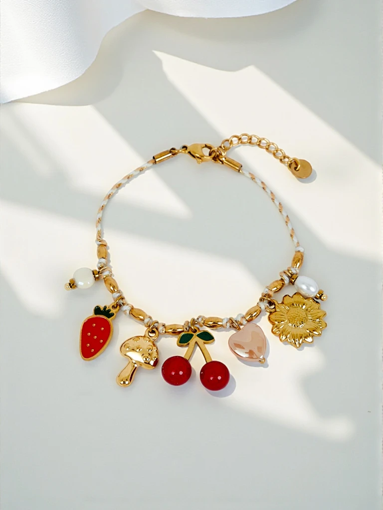 Název: Náramek Ariadna Cherry – barevné přívěsky a zlatavé detaily