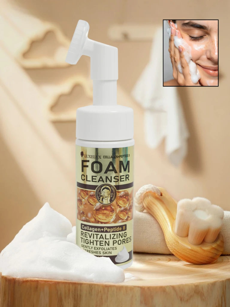 - Čisticí pěna na obličej se štětečkem jemně odstraňuje nečistoty a make-up a zároveň podporuje pružnost pleti díky kolagenu a peptidu 8. Pleť je hladká, pevná a zářivá.