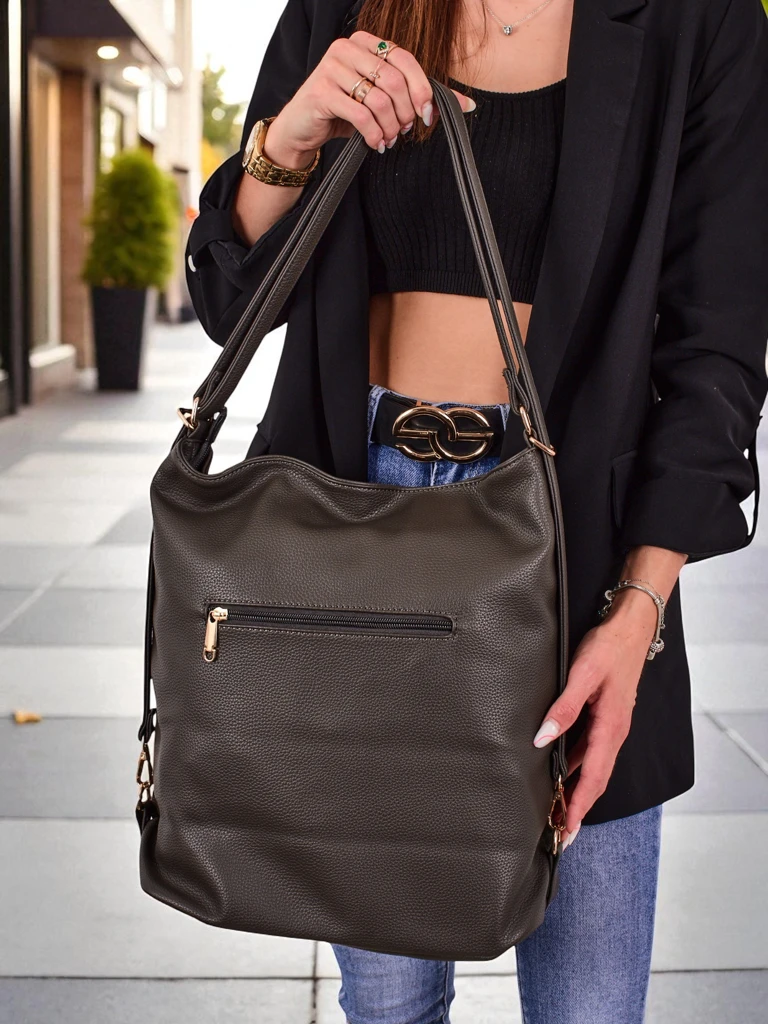 - Dámská kabelka, batoh a shopper v jednom z eko kůže. 1 komora s přepážkou, 8 kapes, odnímatelný a nastavitelný popruh. Ideální do práce i pro běžné nošení – prostorná, módní a praktická.