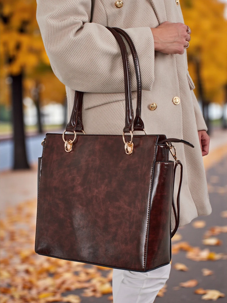 - Elegantní dámská taška z ekologické kůže. 1 komora s přepážkou, 4 kapsičky, odnímatelný, nastavitelný popruh. Ideální do práce i pro běžné nošení – prostorná, módní a praktická.