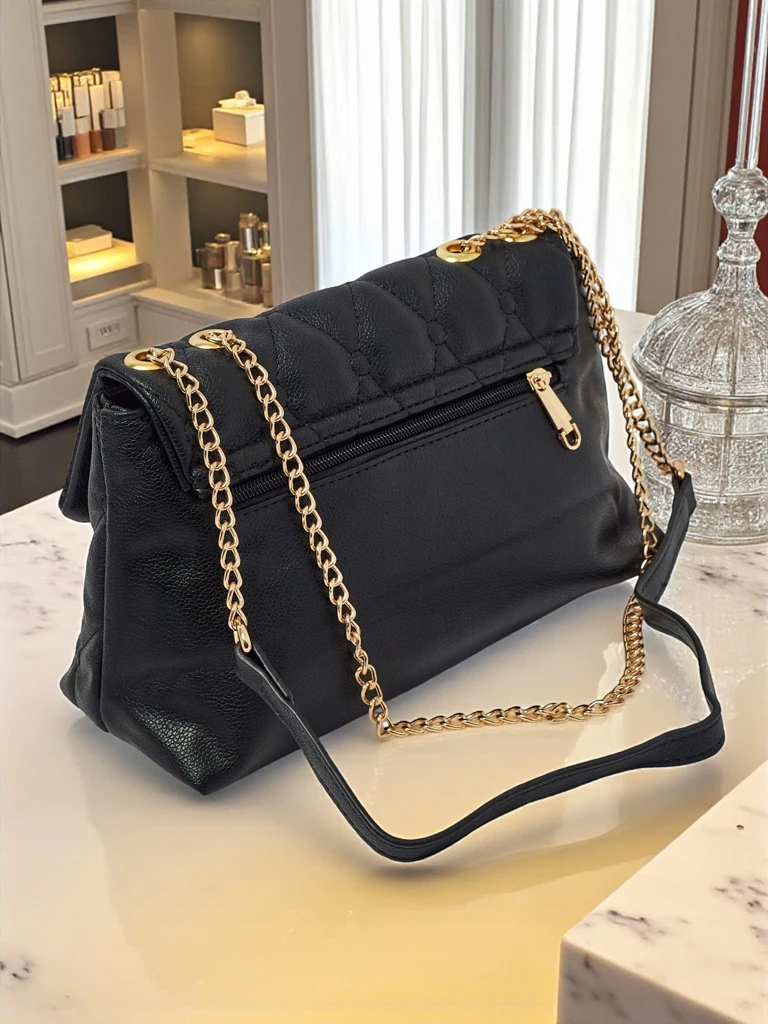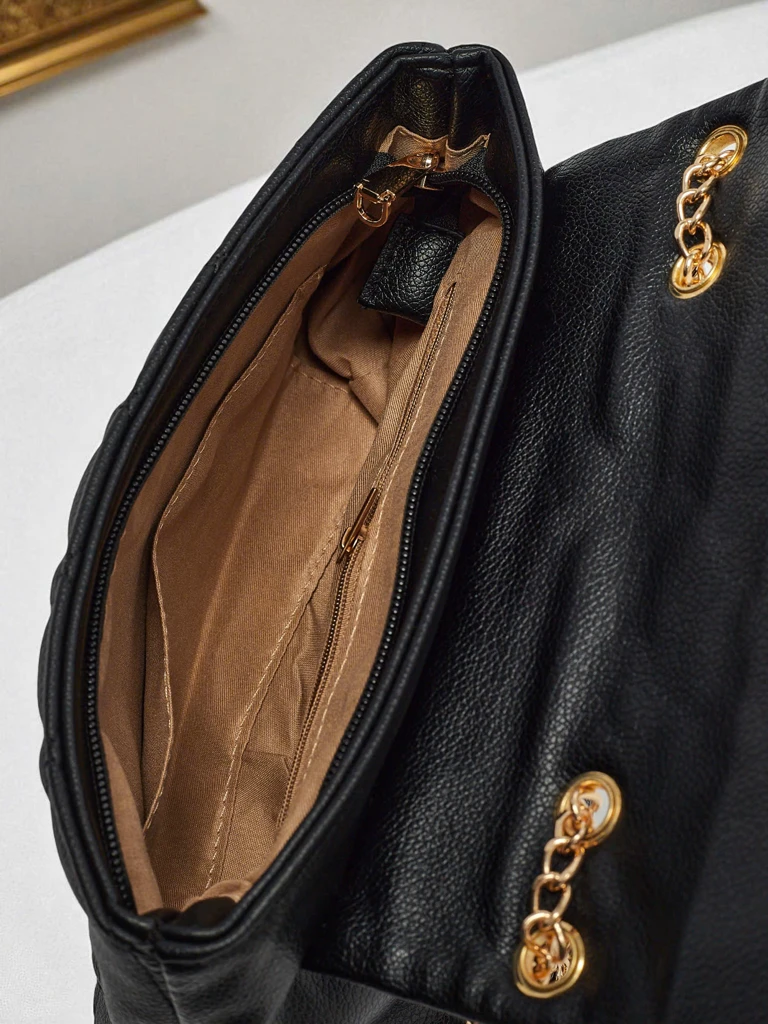 - Černá dámská kabelka Frost Ember z měkké ekologické kůže, zlatý řetízek, stylová a prošívaná – ideální pro každou příležitost.