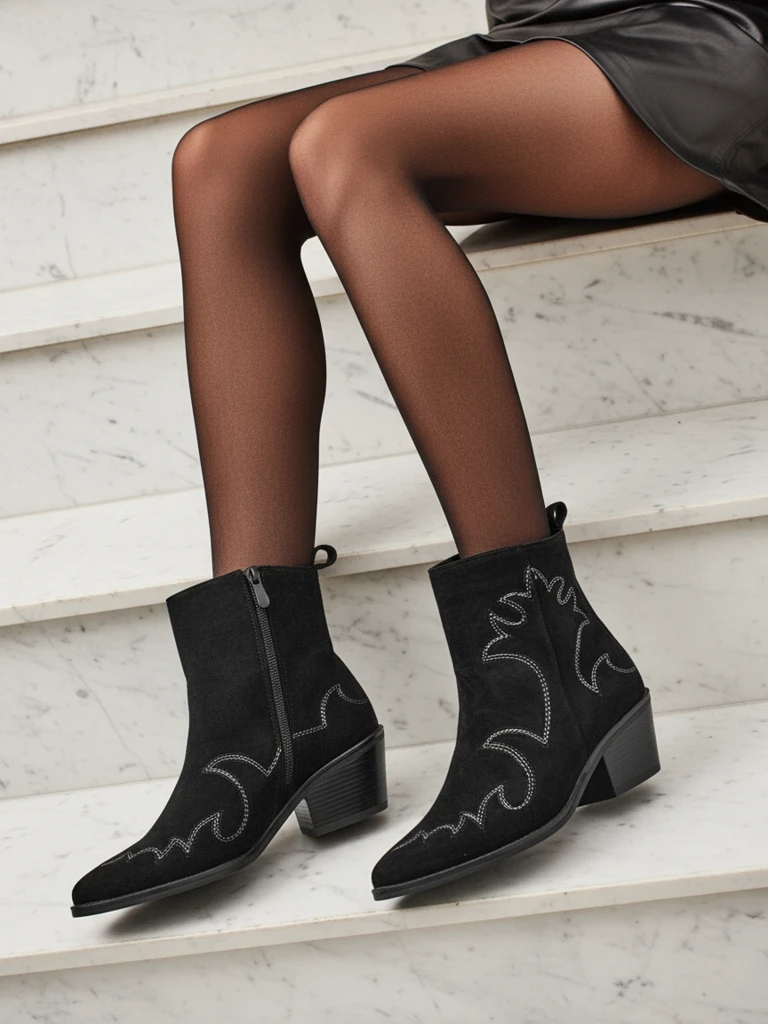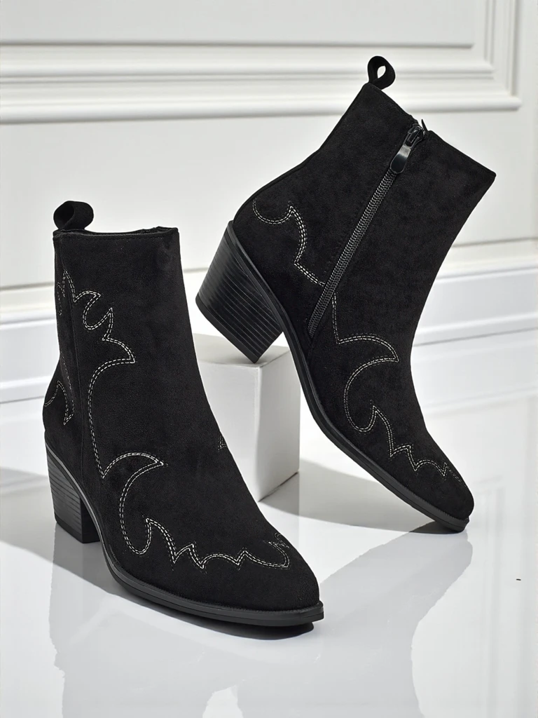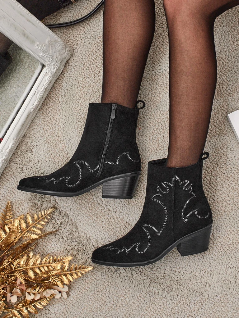 Dámské kotníkové boty kovbojského stylu Velvet Ash – na podpatku