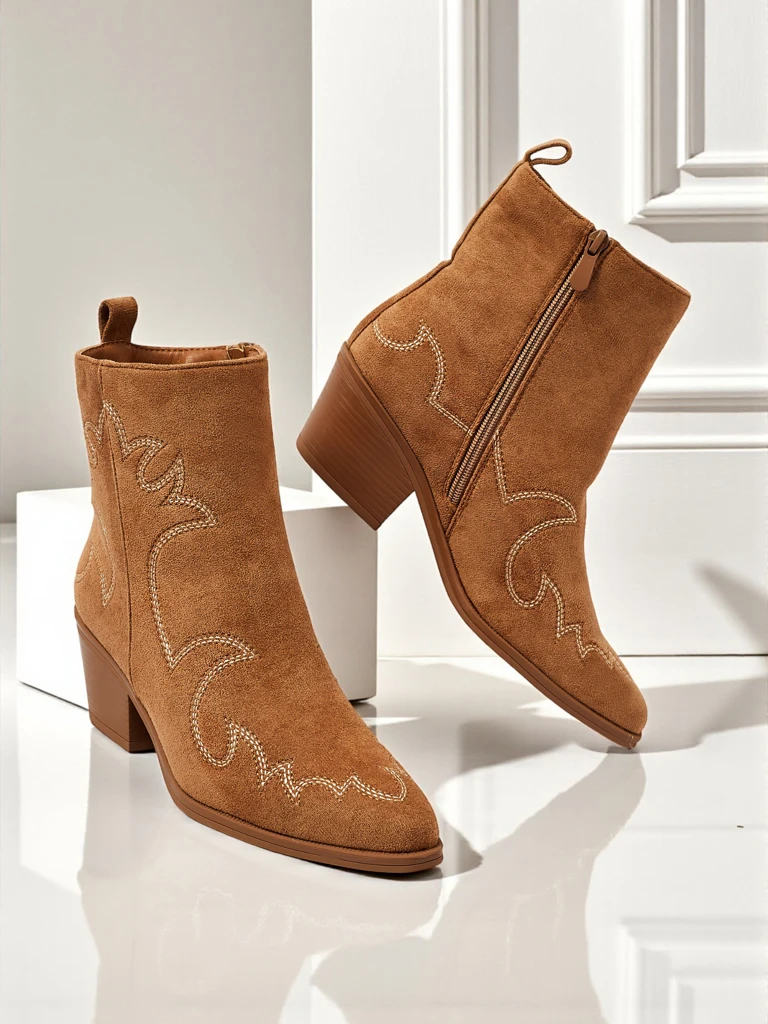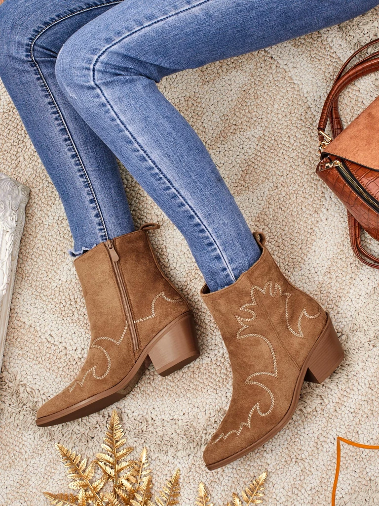 Dámské kotníkové boty kovbojského stylu Velvet Ash – na podpatku