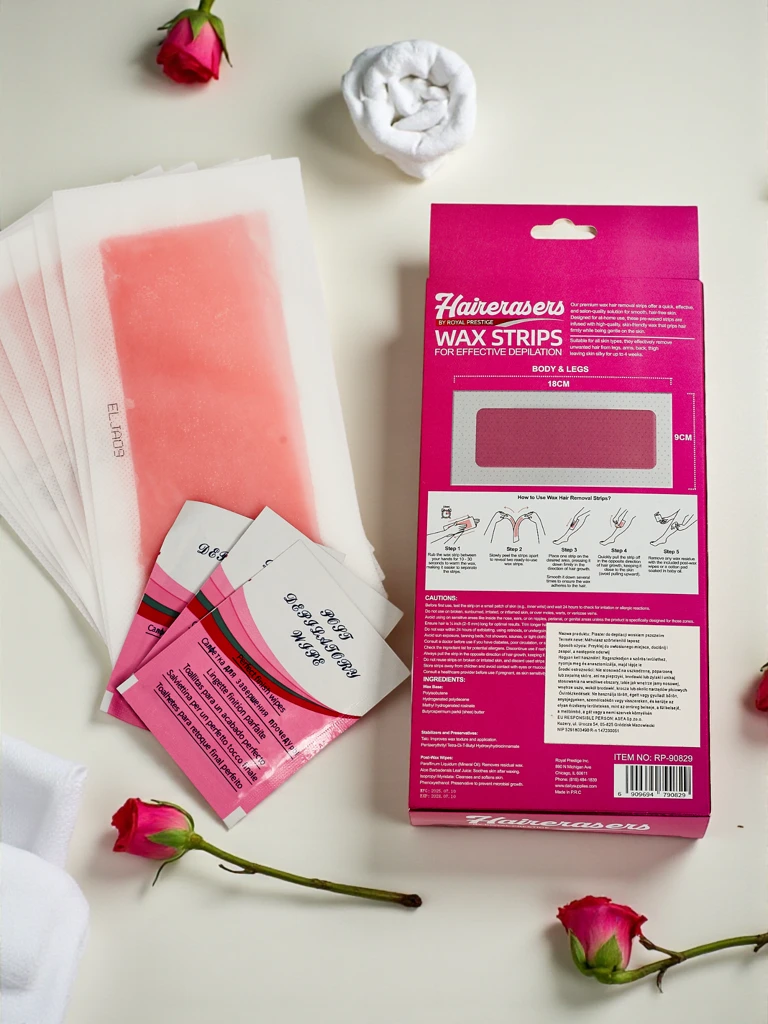 • Voskové depilační pásky na tělo jsou rychlý a účinný způsob, jak dosáhnout hladké pokožky až na 4 týdny. Snadno se používají, odstraňují chloupky i s kořínky a zanechávají pokožku hedvábně jemnou a upravenou bez nutnosti častého holení.