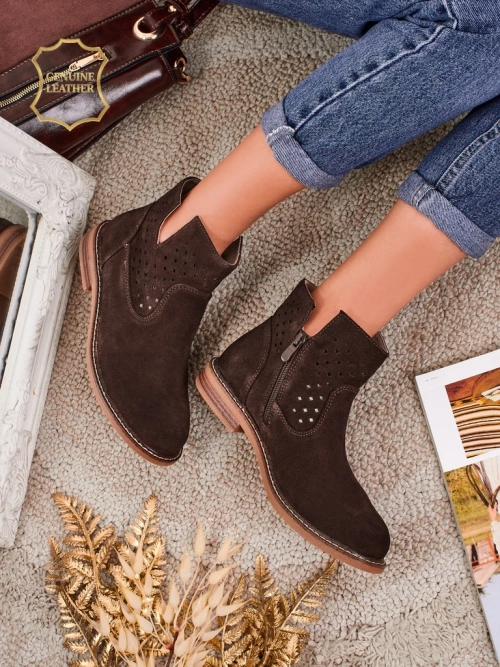 Aurelia Verona - Hnědé semišové dámské botky z přírodní kůže, 3 cm podpatek