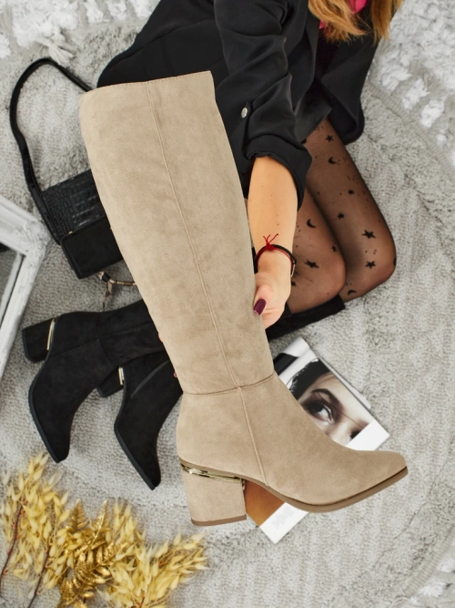 Dámské kozačky eko semišové na sloupkovém podpatku Niefio