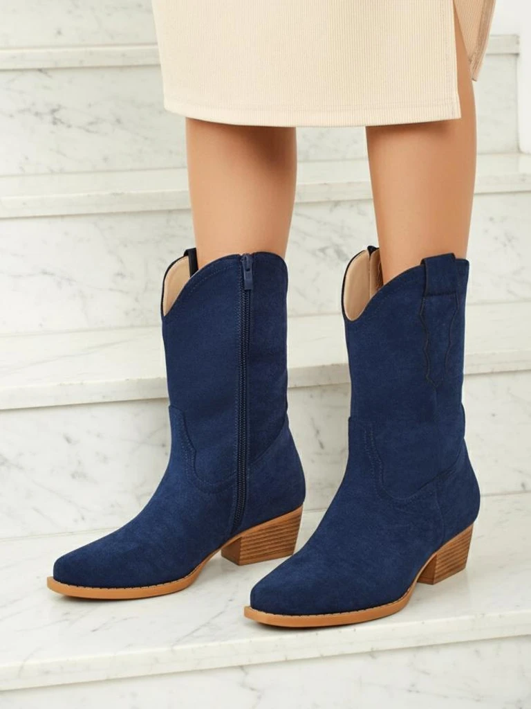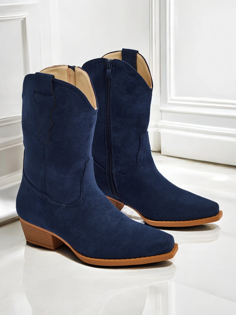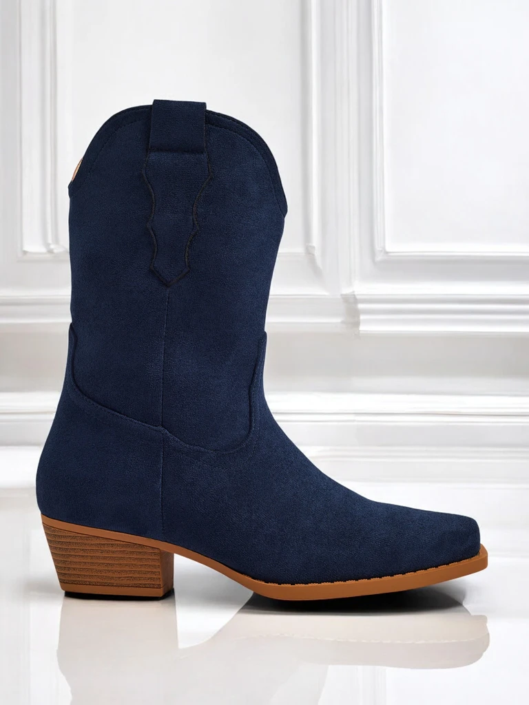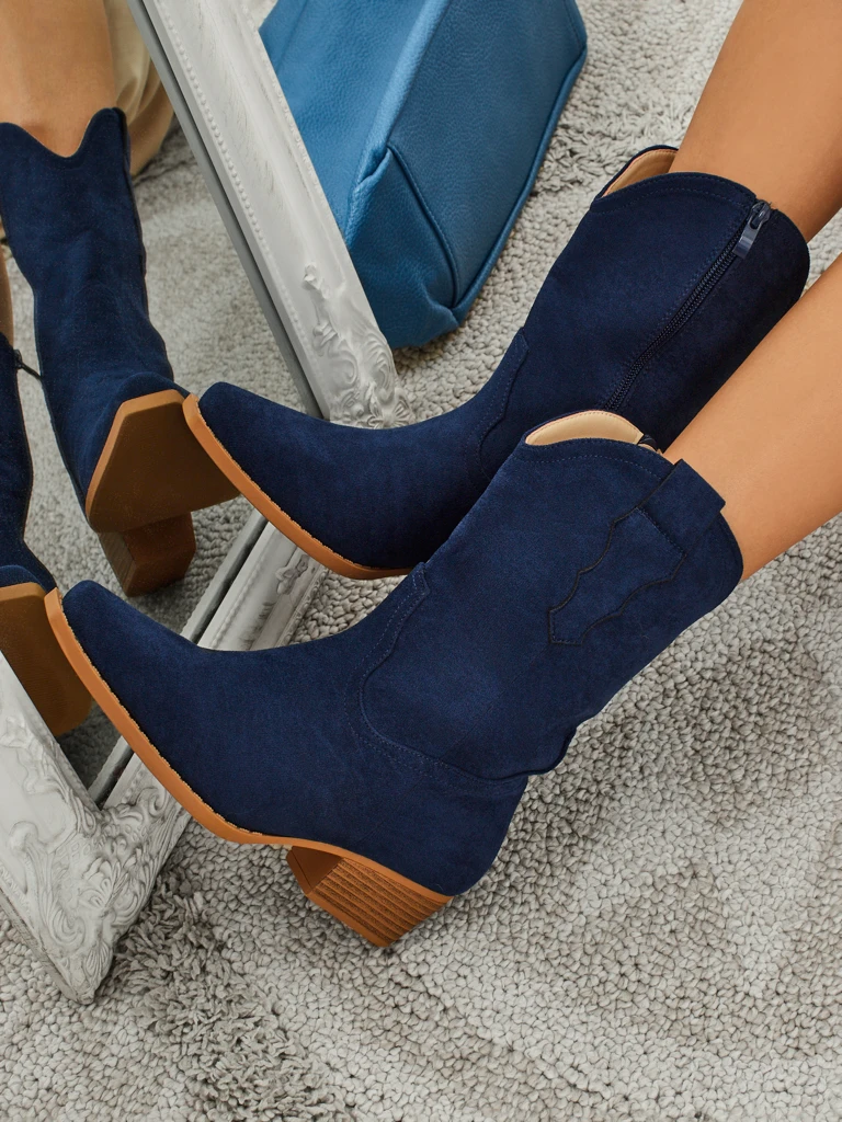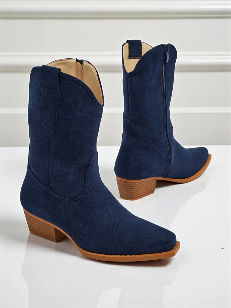 • Kotníkové boty v kovbojském stylu s plochým podpatkem, vyrobené z ekologické semišové kůže. Textilní stélka, boty se zapínají na zip. Hodí se k mnoha ženským stylizacím!