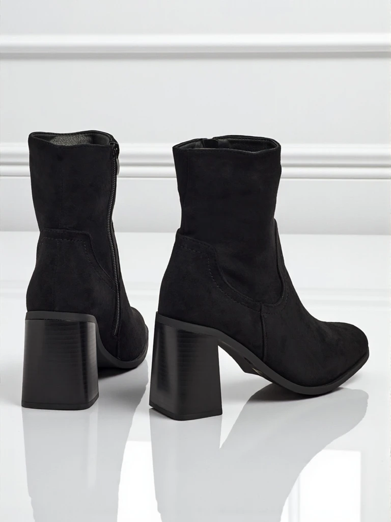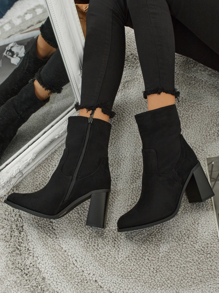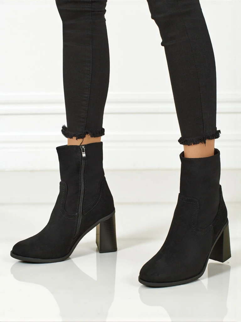 • Pohodlné kotníkové boty na sloupku, vyrobené z eko semišové kůže. Model se zapínáním na zip. Ideální volba na podzim!