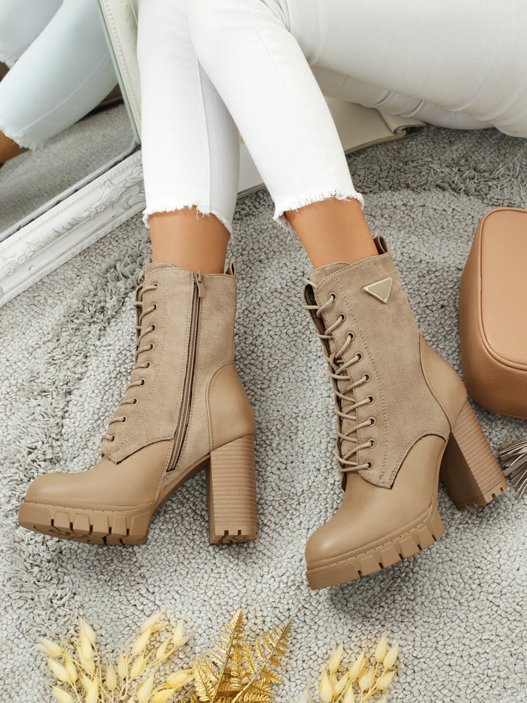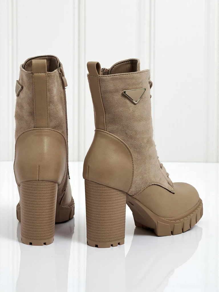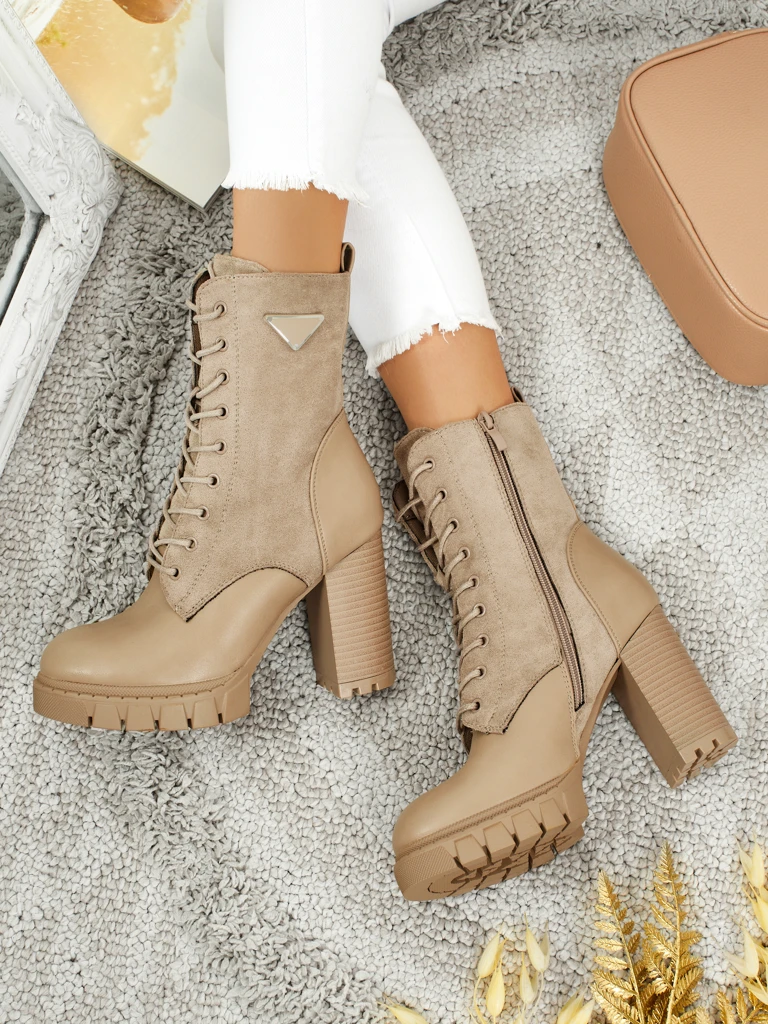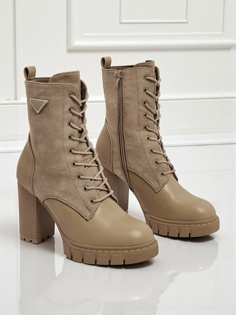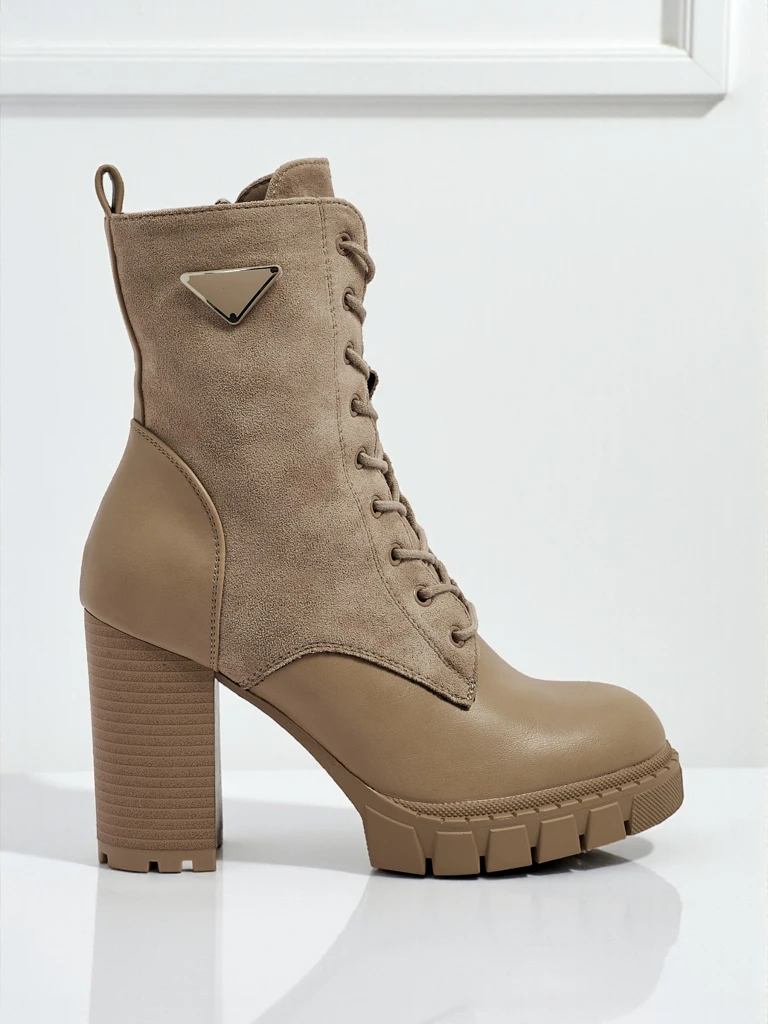 - Pohodlné kotníkové boty na sloupkovém podpatku, vyrobené z eko semišové kůže a ekologické kůže. Model je šněrovací a zapíná se na zip. Ideální volba na podzim!